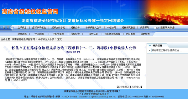 2016年12月19日,湖南省正陽光電科技有限公司成功中標(biāo)懷化市芷江路綜合治理體質(zhì)改造工程項目(四標(biāo)段)。
