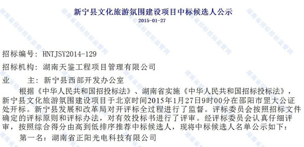 中標通知——熱烈祝賀湖南正陽成功中標新寧縣文化旅游氛圍建設(shè)項目[2015-02-07]
