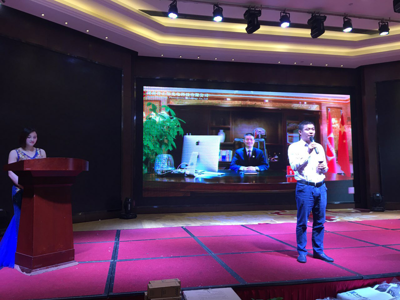 晚上18:30至21:30,承辦單位湖南省正陽(yáng)光電科技有限公司等三家單位聯(lián)合舉辦了隆重的“利亞德?君澤、正陽(yáng)、誼宇誠(chéng)之夜”歡聚晚宴。并各承辦單位代表上臺(tái)致辭。